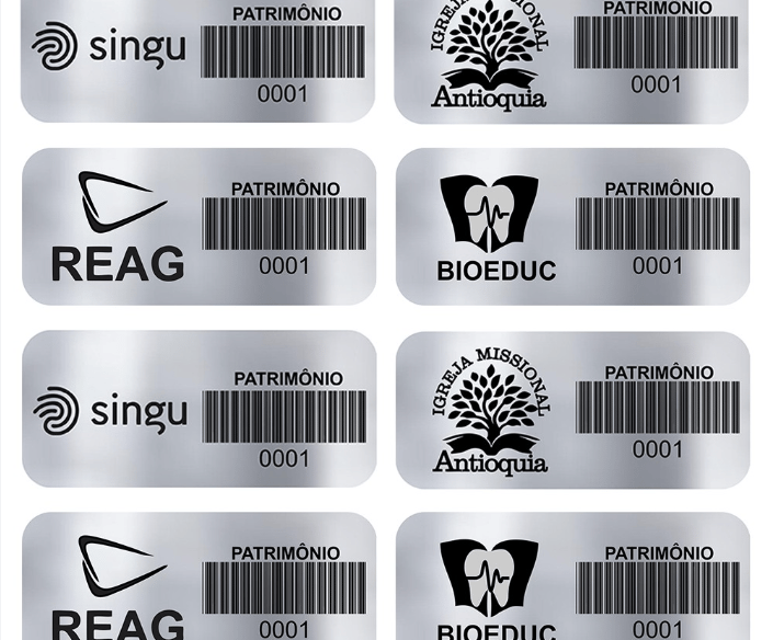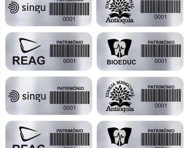 Etiqueta adesiva confeccionadas em poliéster, vinil ou alumínio, conforme a necessidade.