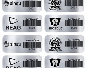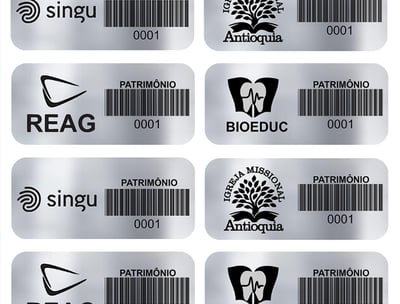 Etiqueta adesiva confeccionadas em poliéster, vinil ou alumínio, conforme a necessidade.
